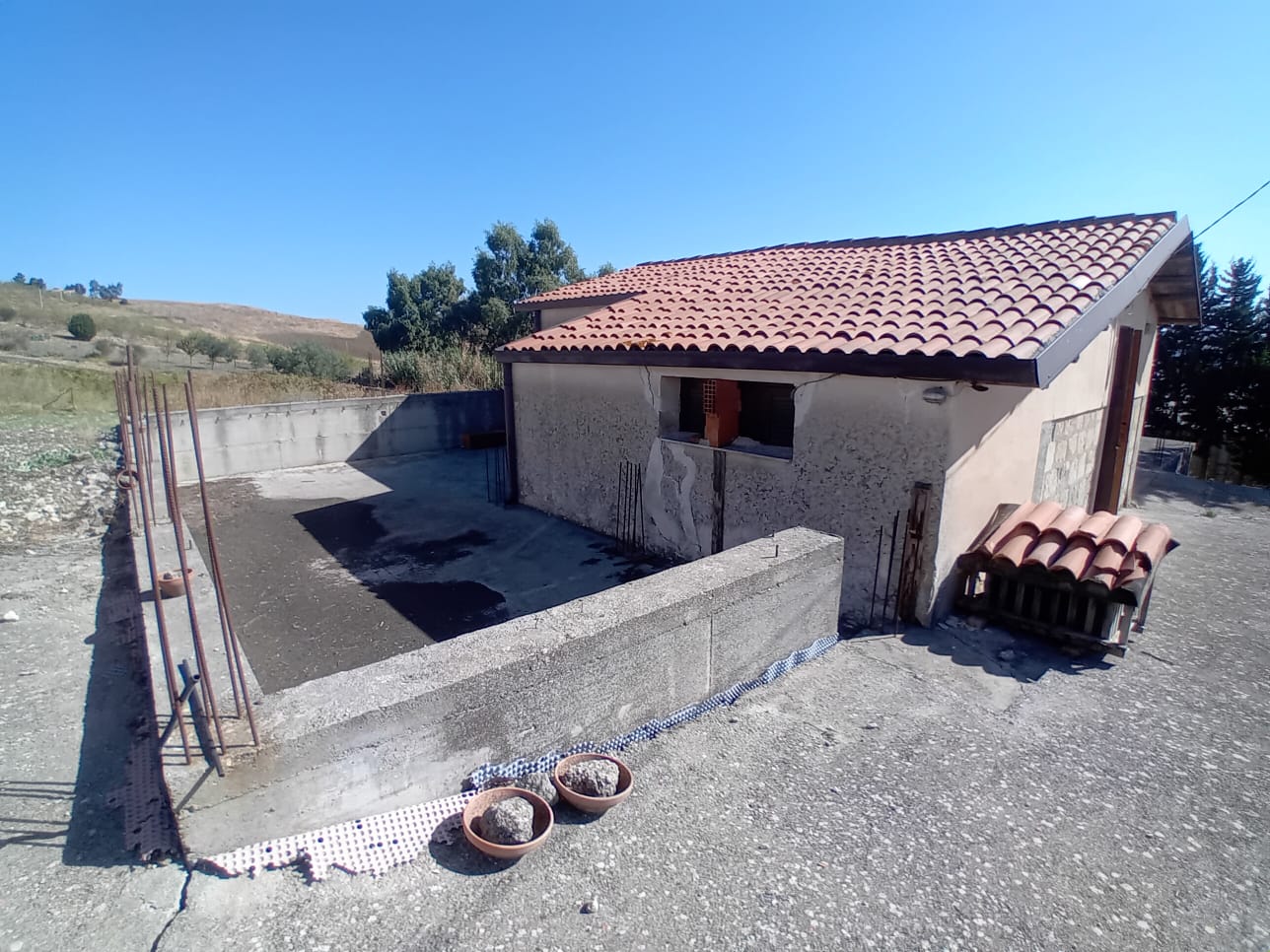 Vendesi Villetta nel cuore di Mussomeli, a pochi kilometri del famoso Castello Manfredonico.  Immersa nella natura della calda Sicilia troverete questa bellissima Villetta, con terreno di 3000mq, tutto recintato con tanti alberi di varie frutti e olivo.  Entrando ci accoglie una luminosa sala-zona living, alla destra abbiamo una comoda cucina e un bagno con doccia, la Villetta ha anche due ampie camere da letto.  Nel piano di sotto della Villetta ce un grande magazzino e fuori una bellissima vista sulle valle.
